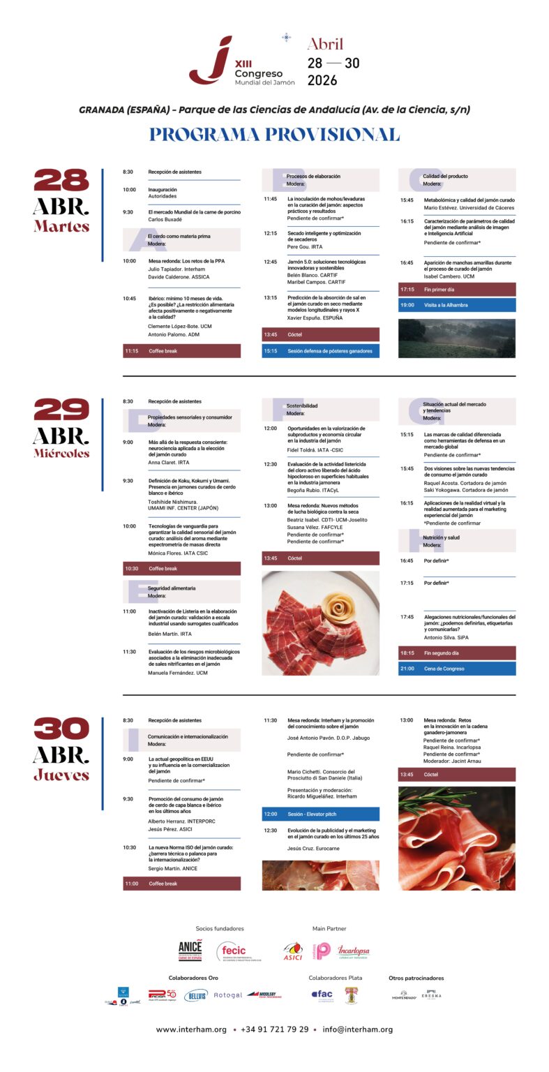 Además de las sesiones de discusión, el congreso propone un programa social para los participantes y sus acompañantes, incluyendo actividades turísticas para descubrir Granada y sus alrededores. Este evento cuenta con el respaldo de Interham y otras entidades relevantes como ANICE y FECIC.