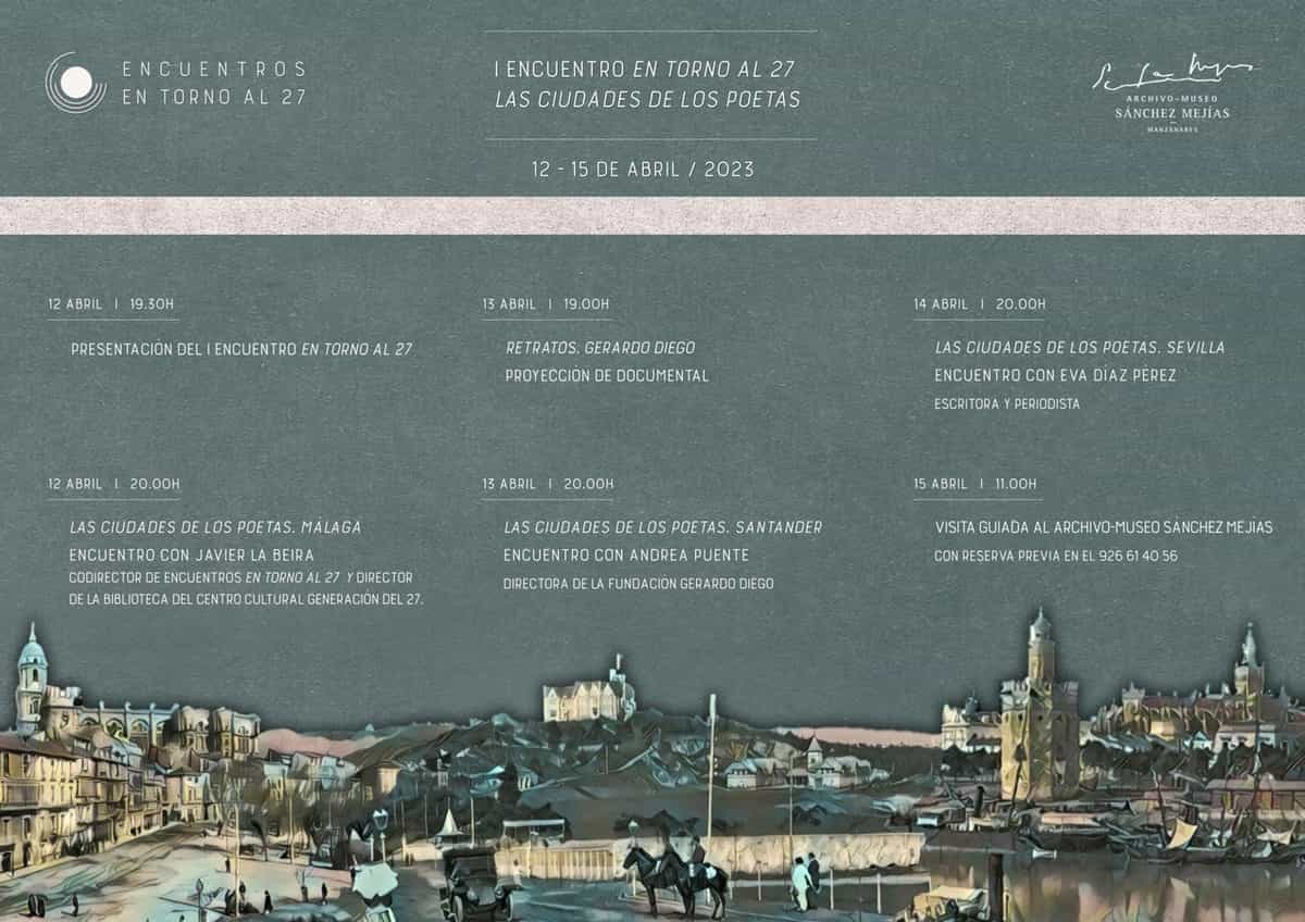 Unas nuevas jornadas anuales dedicadas a la Generación del 27 bajo el nombre “Las ciudades de los poetas” ha organizado el ayuntamiento de Manzanares (Ciudad Real). El primero de estos encuentros “En torno al 27”lugar entre el 12 y el 15 de abril en el archivo-museo ‘Sánchez Mejías’. Incluirá tres conferencias, la proyección de un documental y una visita guiada.