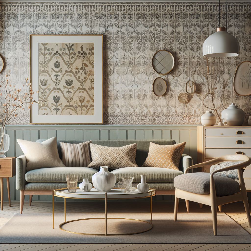 Uno de los elementos más destacados de esta tendencia es el papel pintado, que ha regresado con fuerza en una gama diversa de patrones y texturas. Diseñadores actuales están reinterpretando motivos de décadas pasadas, incorporando elementos naturales, geométricos y florales que recuerdan a los años 50 y 60. Estos papeles, con tonos suaves que son un sello distintivo del estilo escandinavo, sirven como un lienzo perfecto para resaltar las formas simples y elegantes del mobiliario de esa época dorada del diseño.