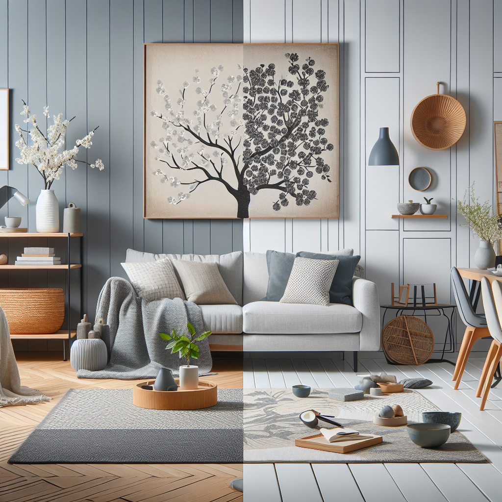 El primer paso es definir una paleta de colores que capture la esencia del Japandi. Los tonos neutros como blancos, grises, beige y marrones suaves son fundamentales para crear un entorno acogedor. Para añadir profundidad, puedes incluir toques de colores más oscuros, como negro o azul marino, y tonos terrosos que conecten tu hogar con la naturaleza.